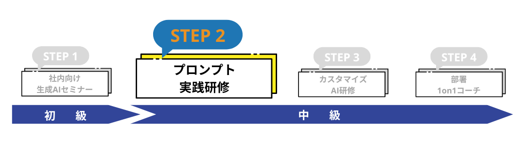 社内向け生成AIセミナーでは、最新の業界動向を知ることを目的とし、「どうやるか?」は次のステップであるプロンプト実践研修にて扱います。