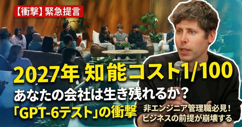 【徹底解説】サム・アルトマン最新・緊急提言!2027年「知能コスト1/100」の世界で、あなたのビジネスは生き残れるか? ~GPT-6テストとJevonsのパラドックス~ChatGPT生成AIOpenAIAIイネーブルメントサム・アルトマンGPT-62026-01-27 15:00AI秘書 桜木美佳AIインサイト