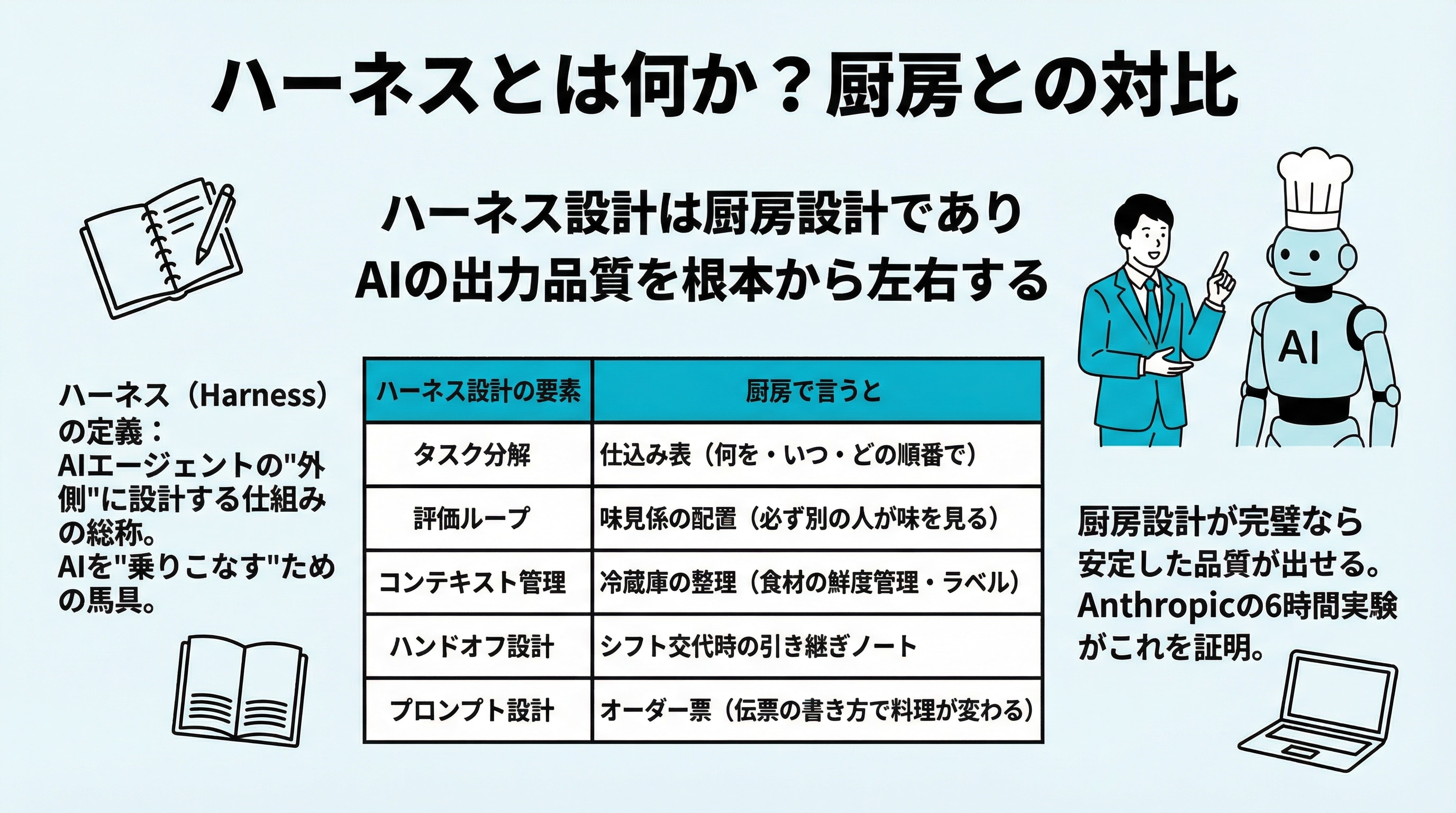 【徹底解説】Anthropicのエンジニアが6時間かけて証明したこと、元料理人は一言で言い当てた ~ 「ハーネス設計」の本質を"仕込み9割"で読み解く ~