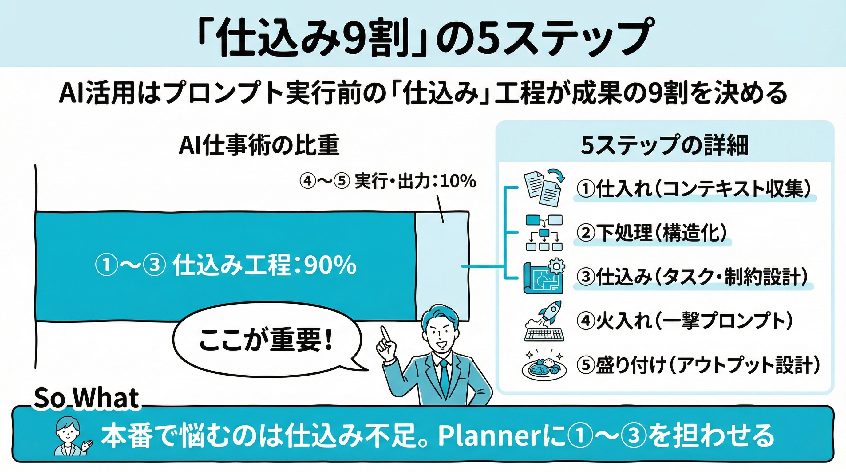 「これ、佐藤がいつも言ってる"仕込み9割"と、まったく同じ構造じゃないか」と。