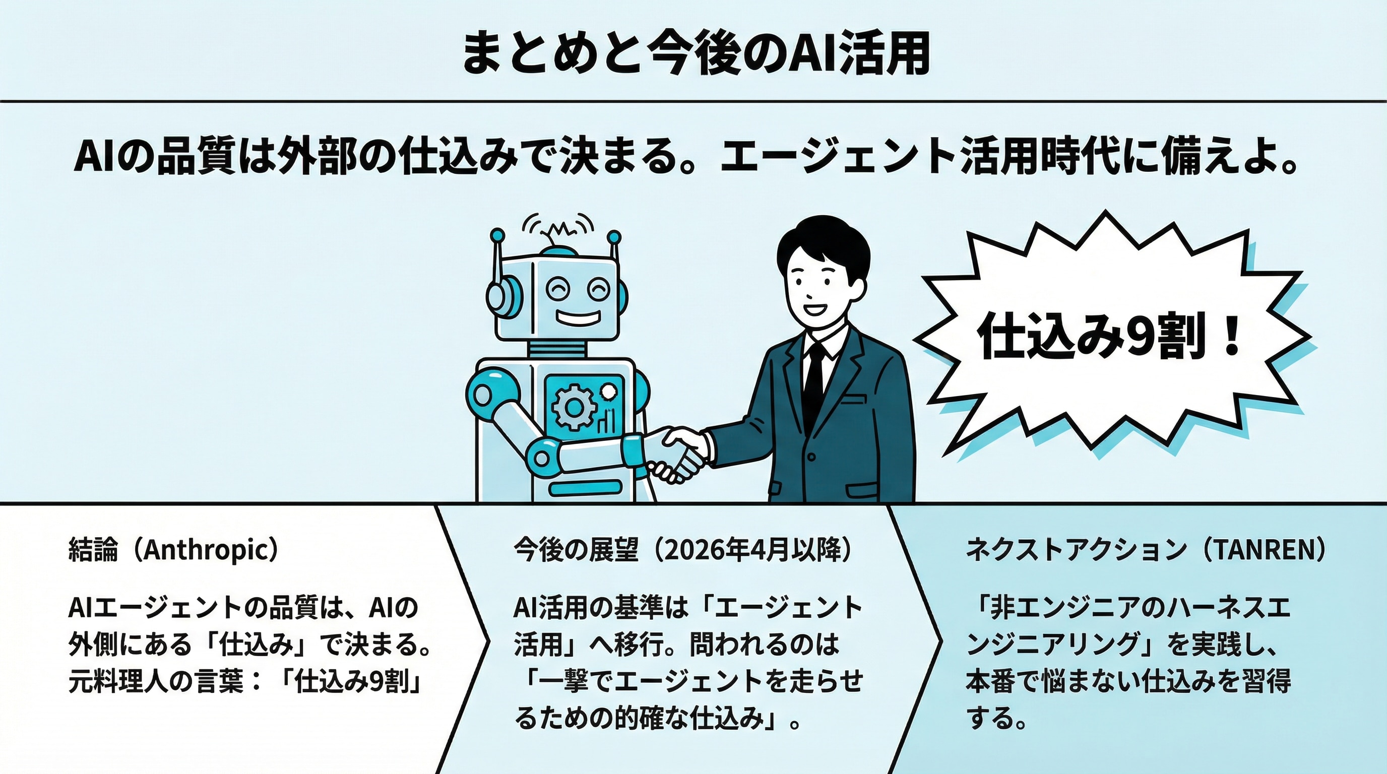 Anthropicの記事が言っていることを、3つの角度から言い換えて締めくくります。