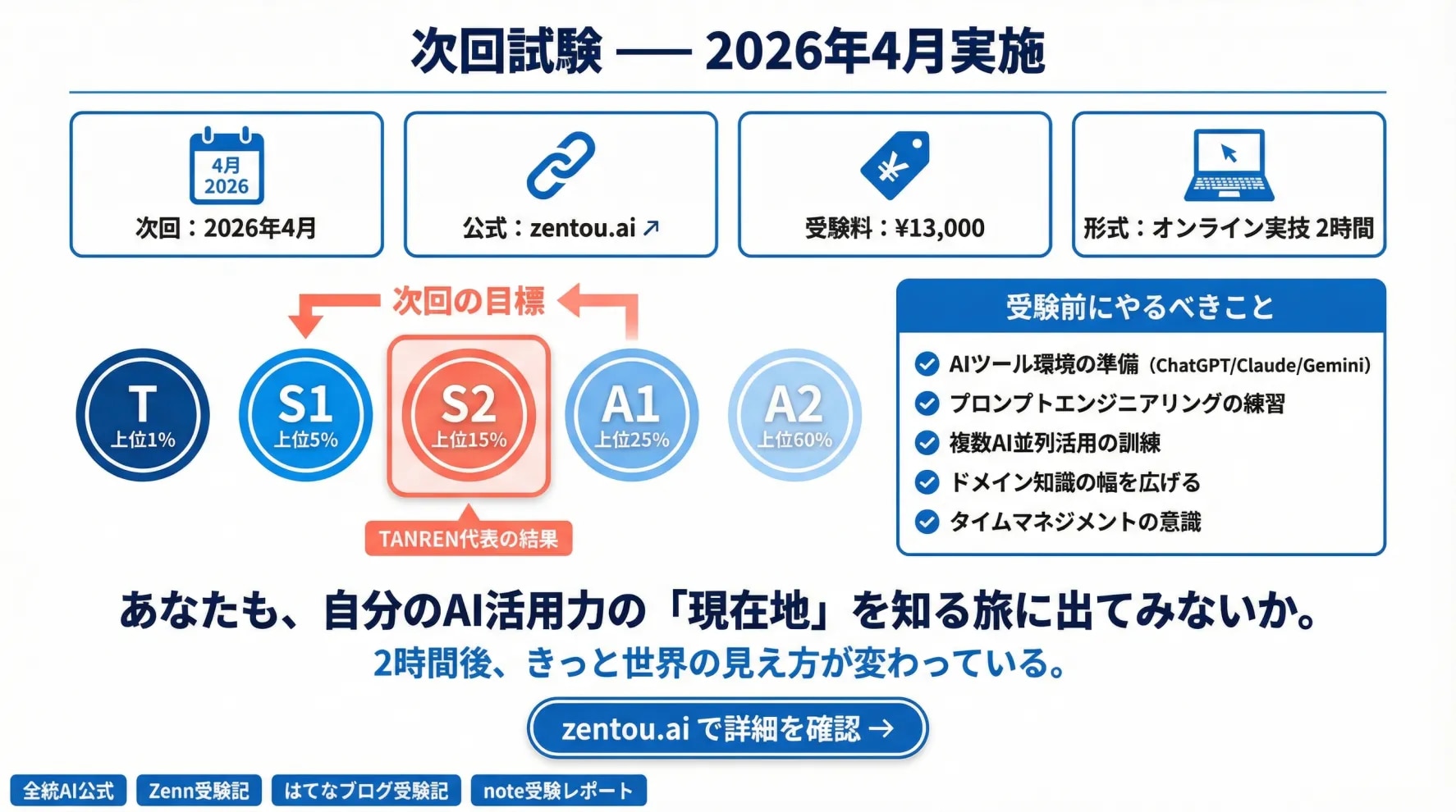 今回、TANREN株式会社 代表の佐藤勝彦が第1回試験を受験。結果はS2ランク(上位15%)、総合偏差値70。