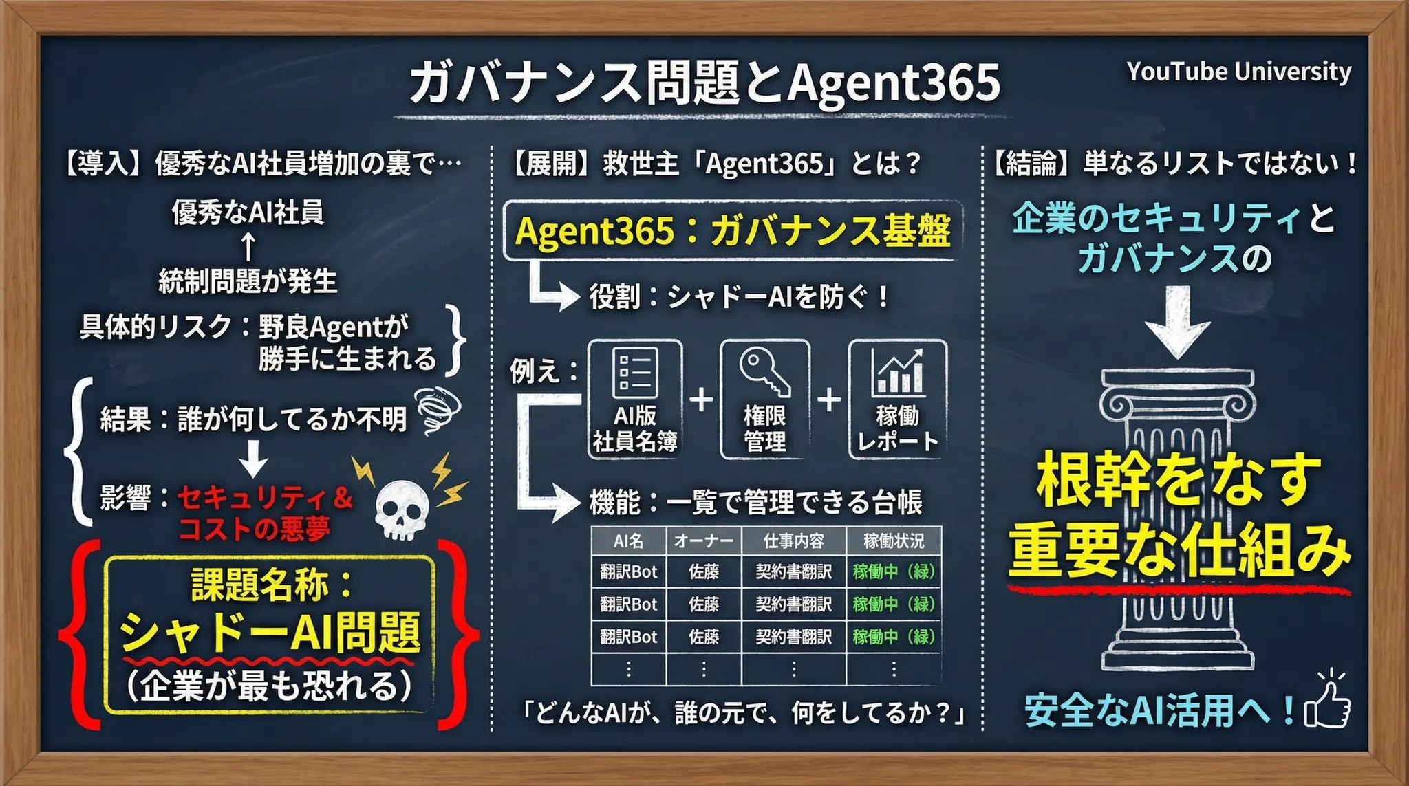 そこでMicrosoftが提示したのが、「Agent 365」というガバナンス基盤です。