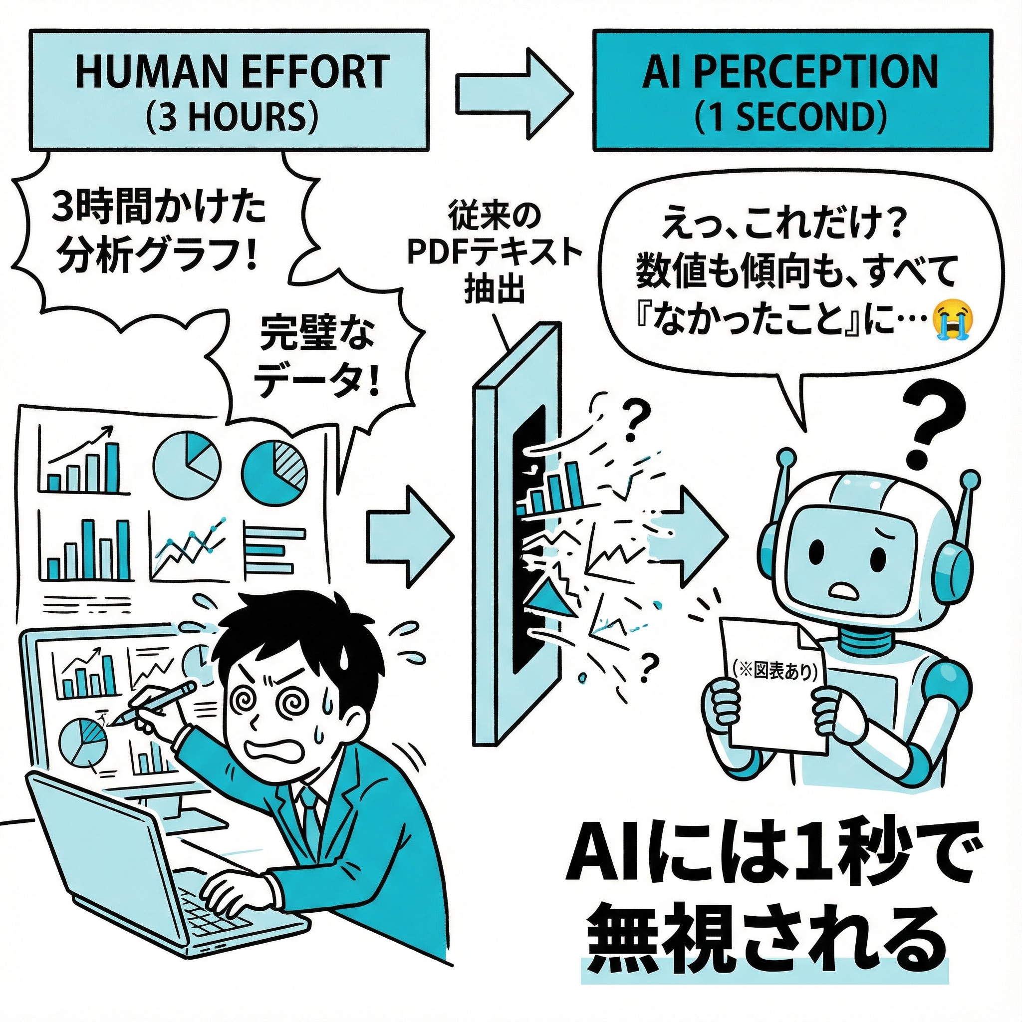 PDFをそのままAIに渡すことは、72点分の情報をドブに捨てているのと同じなのです。