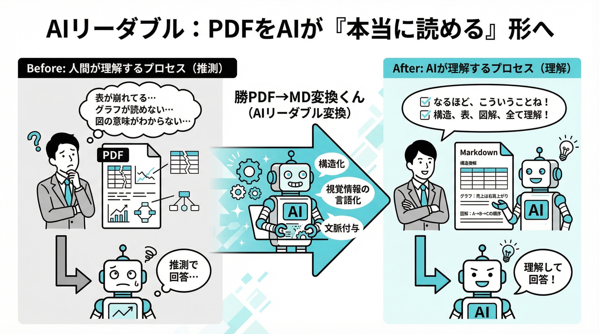 PDFのまま渡すのをやめて、「AIが読みやすい形式」に変換すればいい。