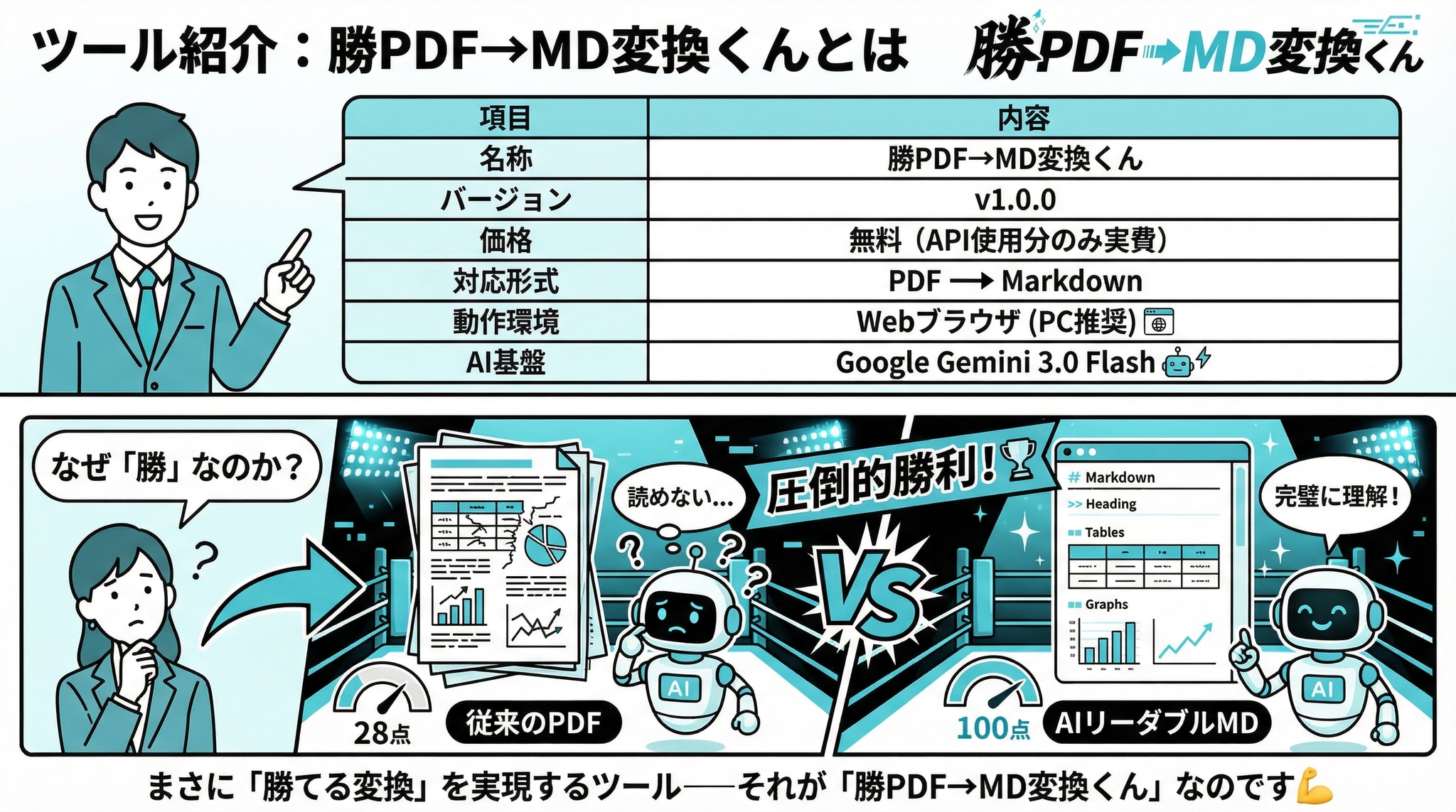 まさに「勝てる変換」を実現するツール――それが「勝PDF→MD変換くん」なのです💪