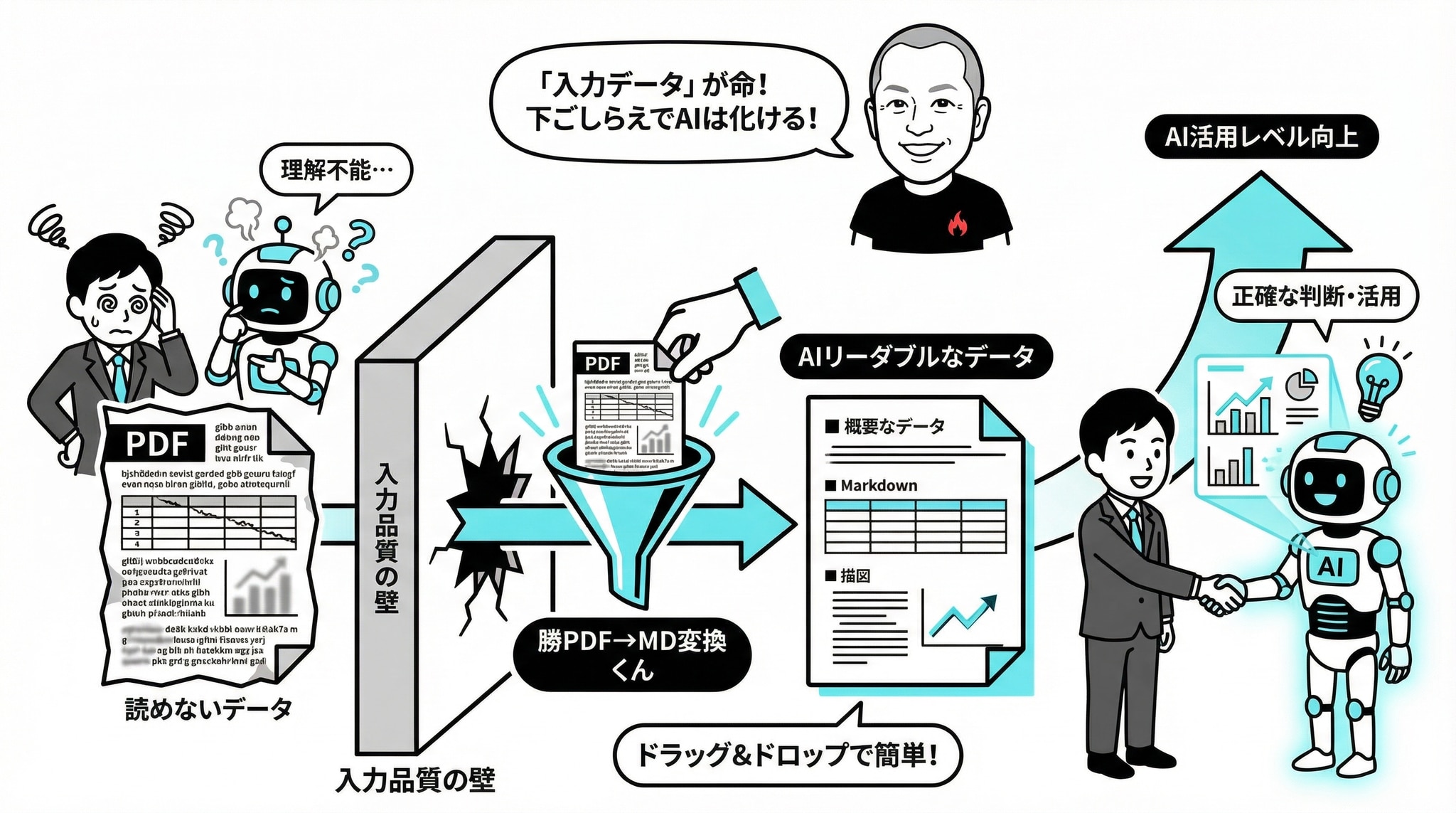 非エンジニアの方でも、ドラッグ&ドロップだけでAIリーダブルなデータを作れる。これが当たり前になれば、日本企業のAI活用レベルは確実に一段上がります。』