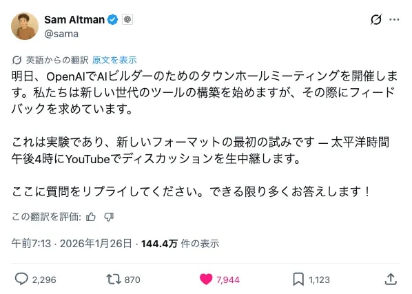 https://x.com/sama/status/2015548504194654707