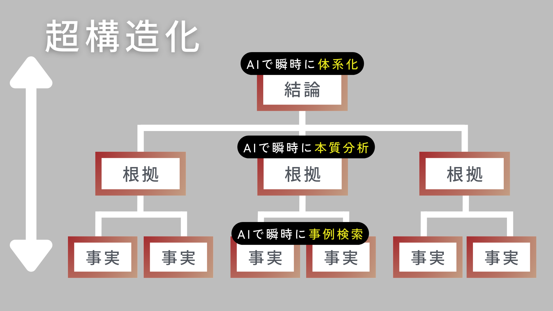 この構造化により、人のコミュニケーションは劇的に改善されます。そして私は発見しました。この思考法をAIと組み合わせることで、人智を超える圧倒的な思考整理が実現できることを。