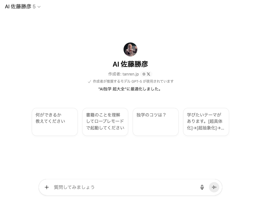 本書の内容をすべて学習し、あなたの読書体験を強力にサポートする「GPTs版 AI佐藤勝彦」です。